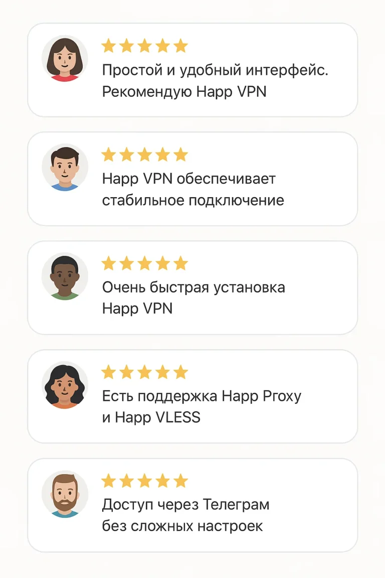 Happ — это простое решение для тех, кто ценит безопасность, стабильность и комфорт при подключении к интернету.