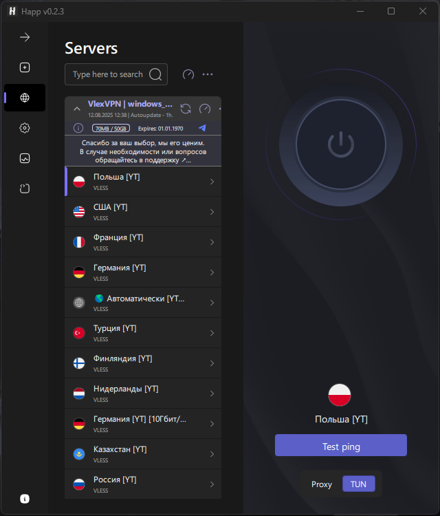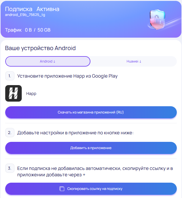 Теперь вы можете пользоваться Happ для безопасной работы в сети, общения и просмотра контента в стабильном и защищённом соединении.